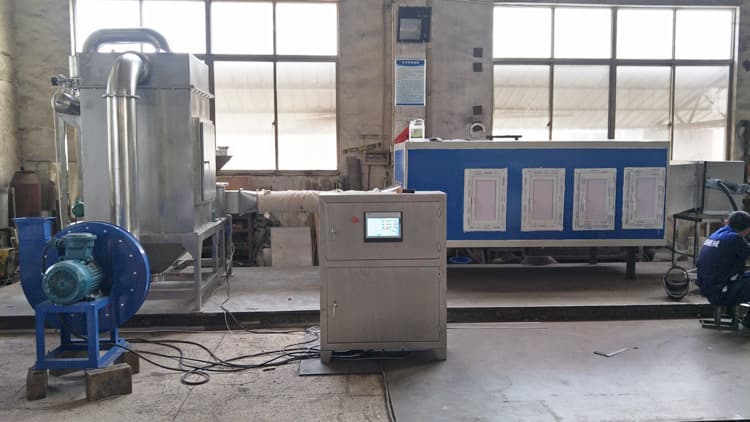 江陰盛田機械工程部研發(fā)人員針對原料的特殊性,多次試料并在兩個月內(nèi)研發(fā)出D級凈化低溫超微粉碎機。該設(shè)備由工業(yè)冷風(fēng)機、進料倉、粉碎機、分級機、旋風(fēng)下料裝置、排風(fēng)過濾裝置、引風(fēng)機、D級凈化系統(tǒng)及電控柜組成。普通超微粉碎機在運轉(zhuǎn)過程會產(chǎn)生相當(dāng)高的熱量,為了降低機腔及管道內(nèi)的溫度,采用了大功率冷風(fēng)機,物料在設(shè)備內(nèi)部粉碎時溫度控制范圍:10~25℃。進風(fēng)口采用D級凈化,整個生產(chǎn)過程在D級潔凈空氣下進行。原料易粘附,工程部技術(shù)人員對粉碎機腔進行了改造,使設(shè)備內(nèi)部無原料殘留物。加裝西門子變頻器控制轉(zhuǎn)速可改變出料細(xì)度,粉碎細(xì)度控制在100目。設(shè)備采用西門子PLC加觸摸屏自動化控制,控制系統(tǒng)器件采用西門子品牌(包含觸摸屏、PLC及擴展模塊、變頻器),其余配電器件采用施耐德品牌。