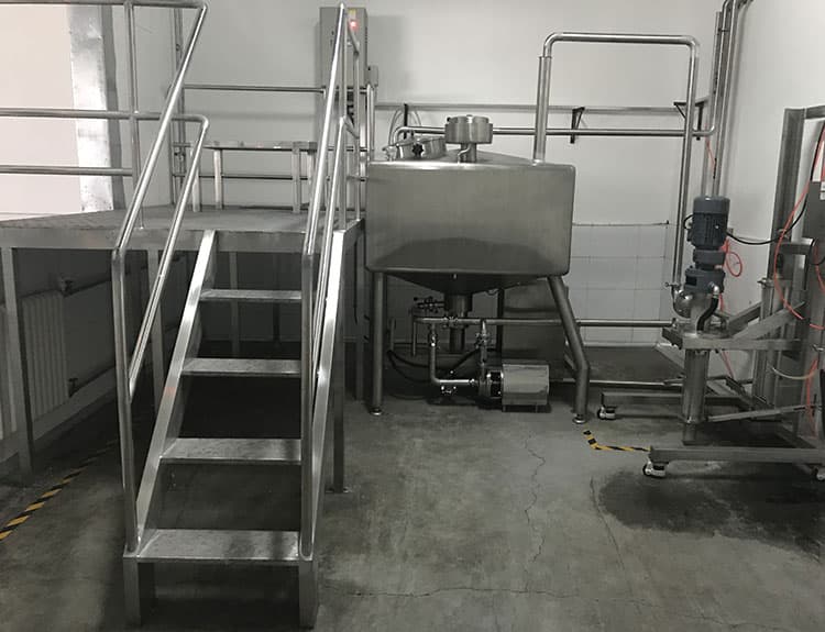 將一種或多種物料(水溶性固相、液相或膠狀物等)溶于另一種液相,并使其與水合成為相對(duì)穩(wěn)定的乳化液。廣泛適用于食用油類、粉類、糖類等原輔料的乳化混合,某些涂料、油漆乳化分散也使用乳化罐,尤其適用于某些難溶膠狀類添加劑如CMC、黃原膠等。