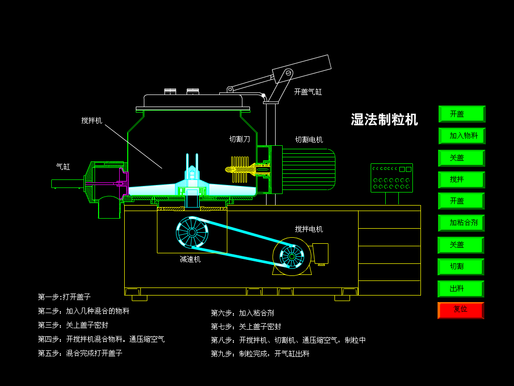 整個(gè)過(guò)程由混合、制粒兩個(gè)工序組成。